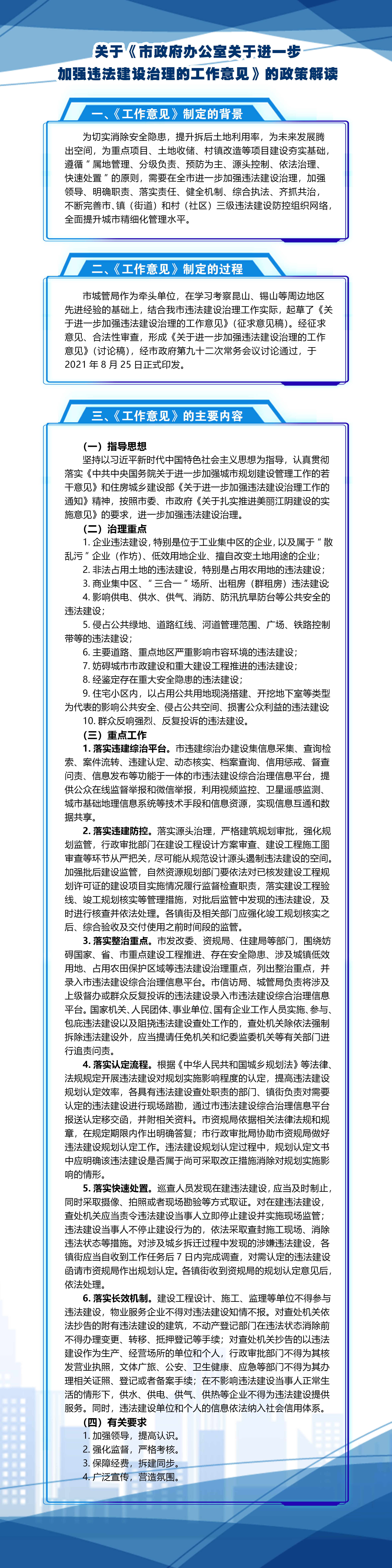 | 內(nèi)容概述 | 一圖讀懂《市政府辦公室關(guān)于進(jìn)一步加強(qiáng)違法建設(shè)治理的工作意見》 | ||||