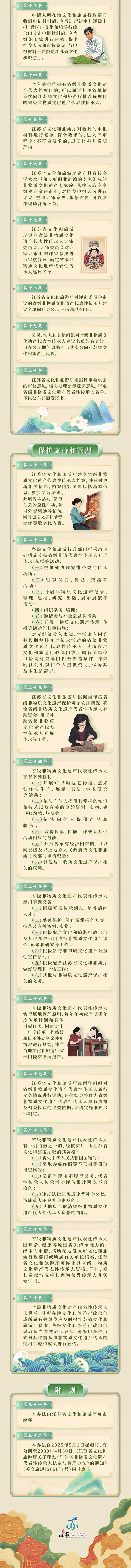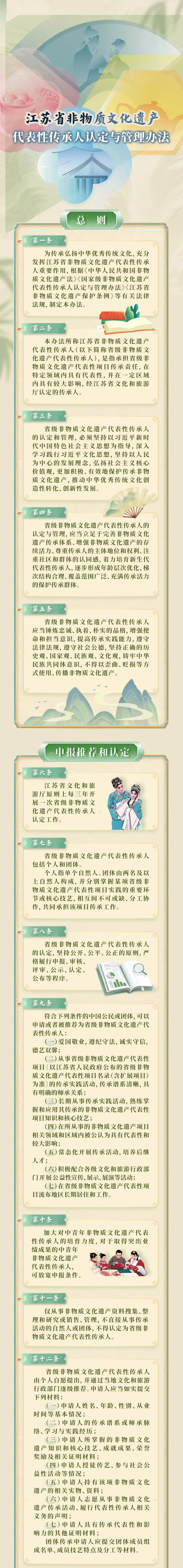 為深入貫徹黨的二十大和二十屆三中全會精神,學習踐行習近平文化思想,認真貫徹落實習近平總書記關于非物質文化遺產(chǎn)保護工作重要指示精神,加強我省非遺代表性傳承人隊伍建設,逐步形成年齡層次優(yōu)化、梯次結構合理、覆蓋范圍廣泛、充滿傳承活力的非遺保護傳承群體,推動中華優(yōu)秀傳統(tǒng)文化創(chuàng)造性轉化、創(chuàng)新性發(fā)展,近日,省文化和旅游廳修訂印發(fā)《江蘇省非物質文化遺產(chǎn)代表性傳承人認定與管理辦法》。