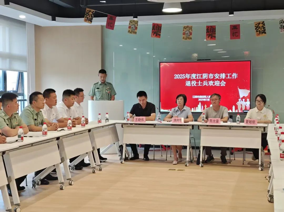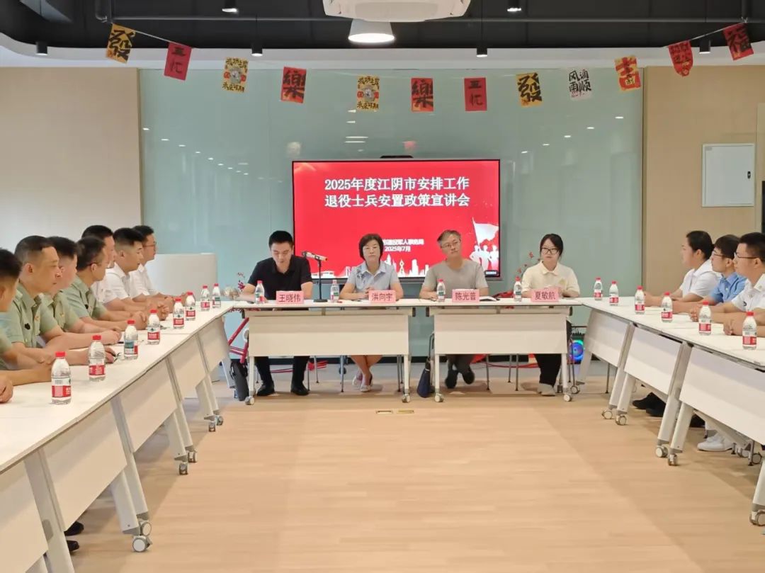 7月11日下午,江陰市安排工作退役士兵歡迎會暨政策宣講會在江陰市人才發(fā)展集團(tuán)人才公寓隆重舉行。市退役軍人事務(wù)局副局長洪向宇、市退役軍人服務(wù)中心主任陳光普、全體安排工作退役士兵參加會議。