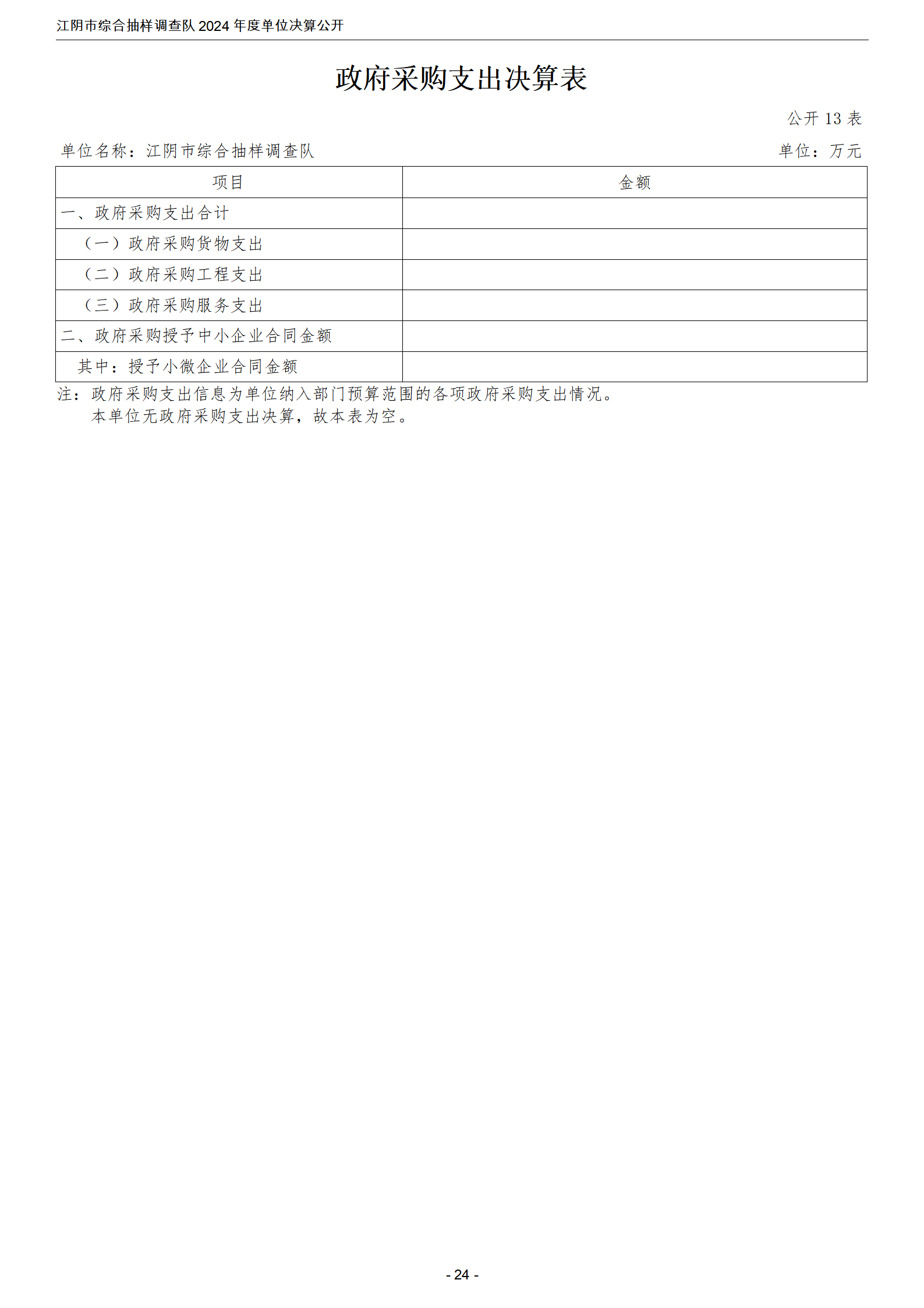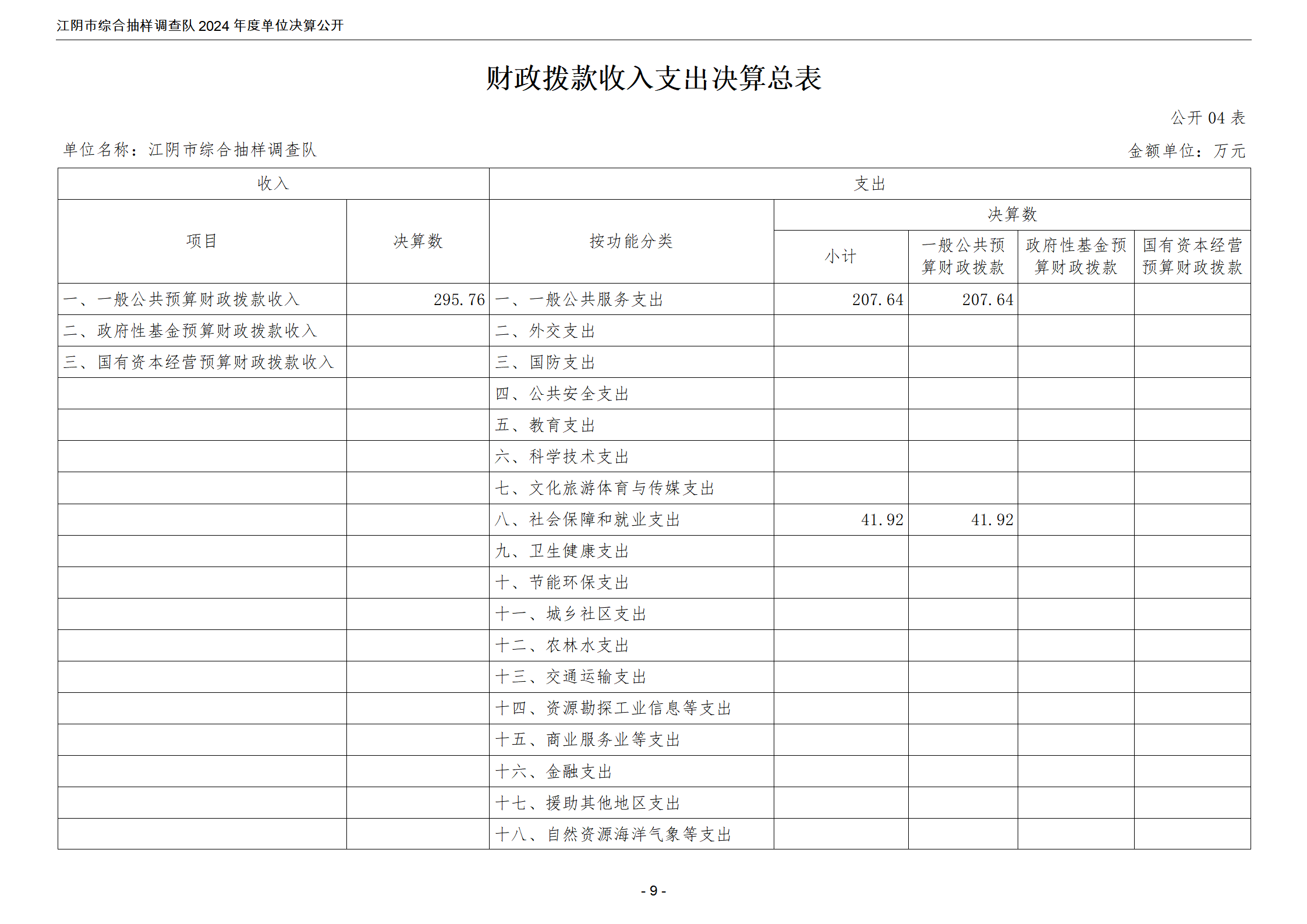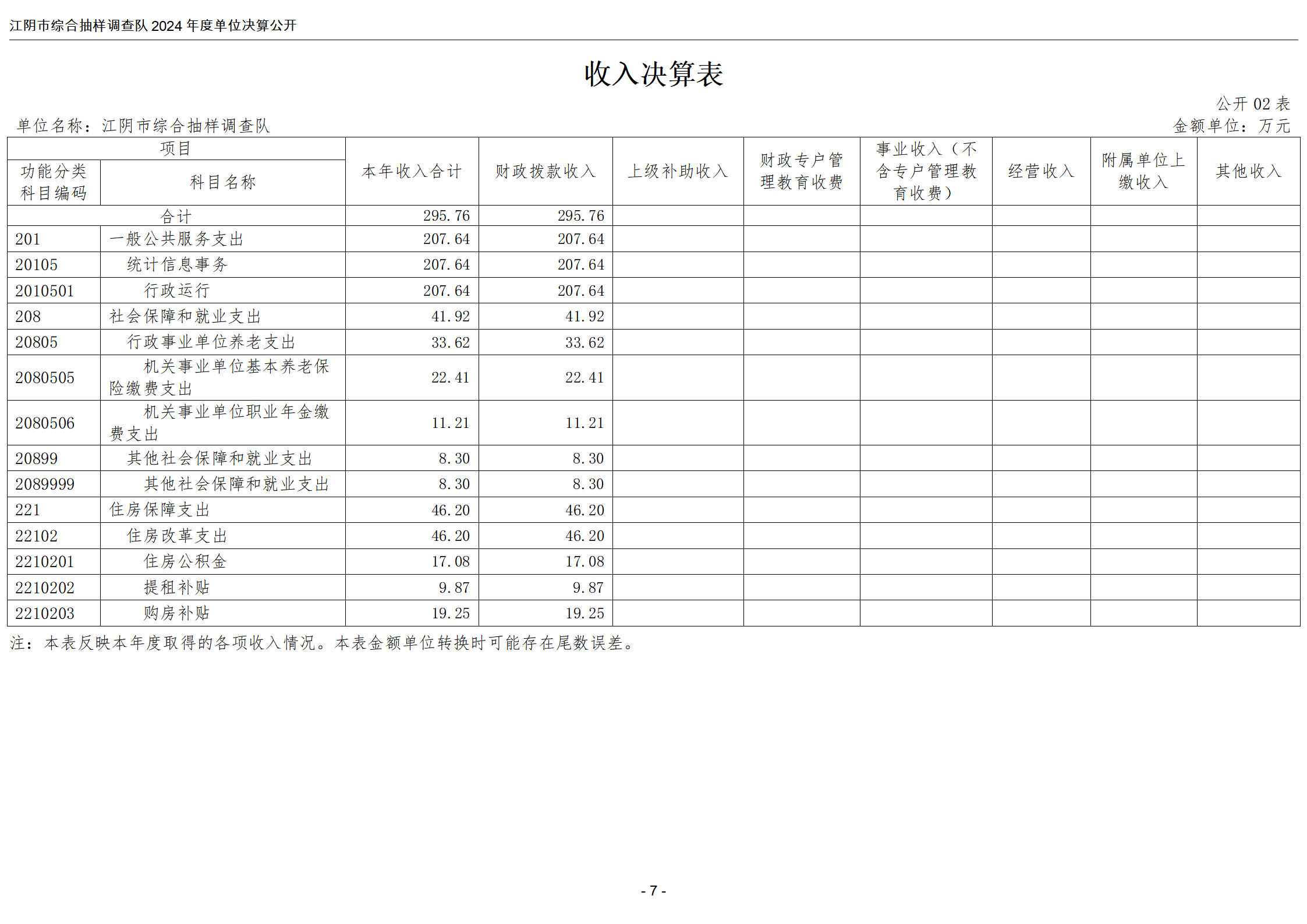 江陰市綜合抽樣調(diào)查隊(duì)2024年度單位決算公開(kāi)