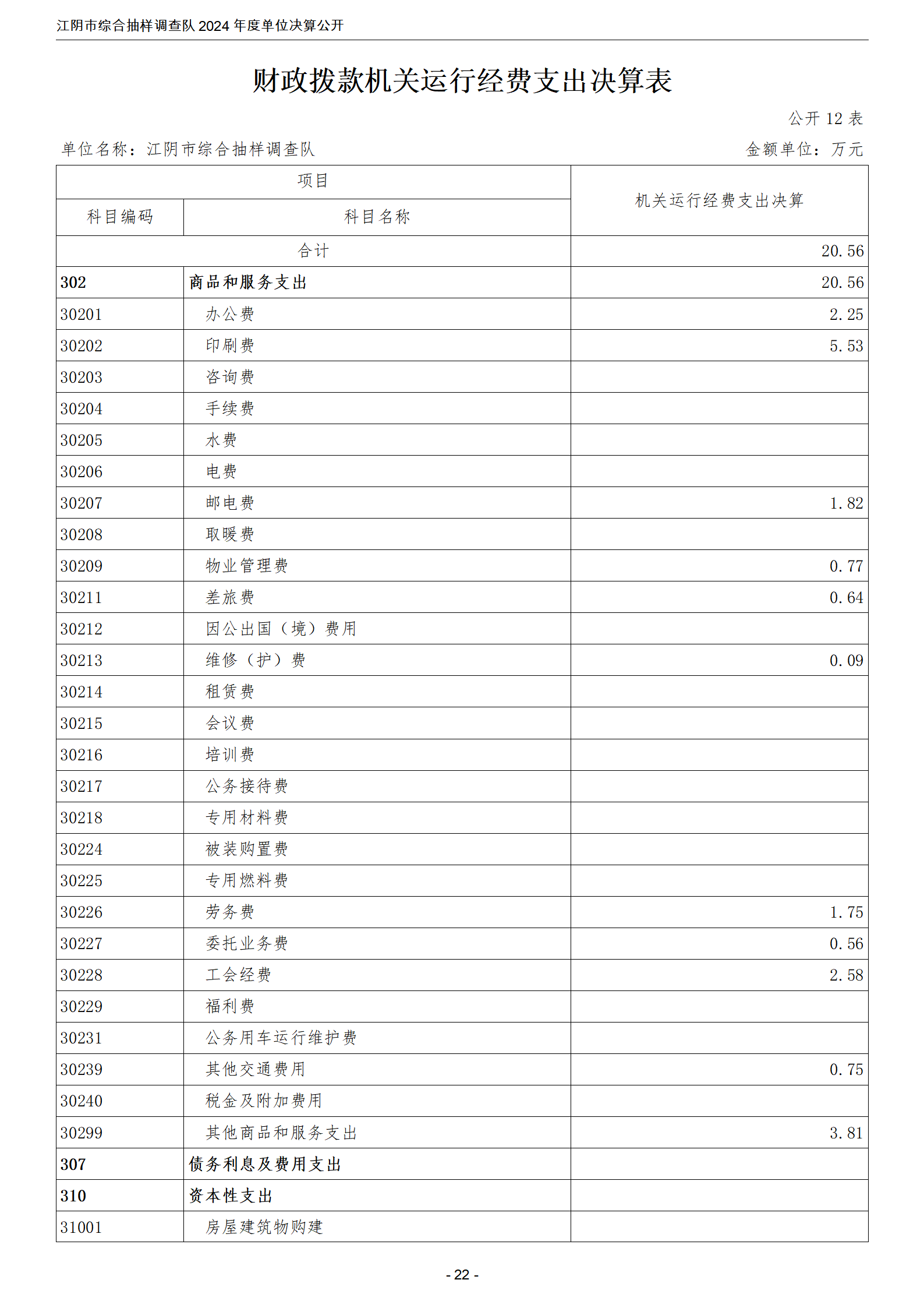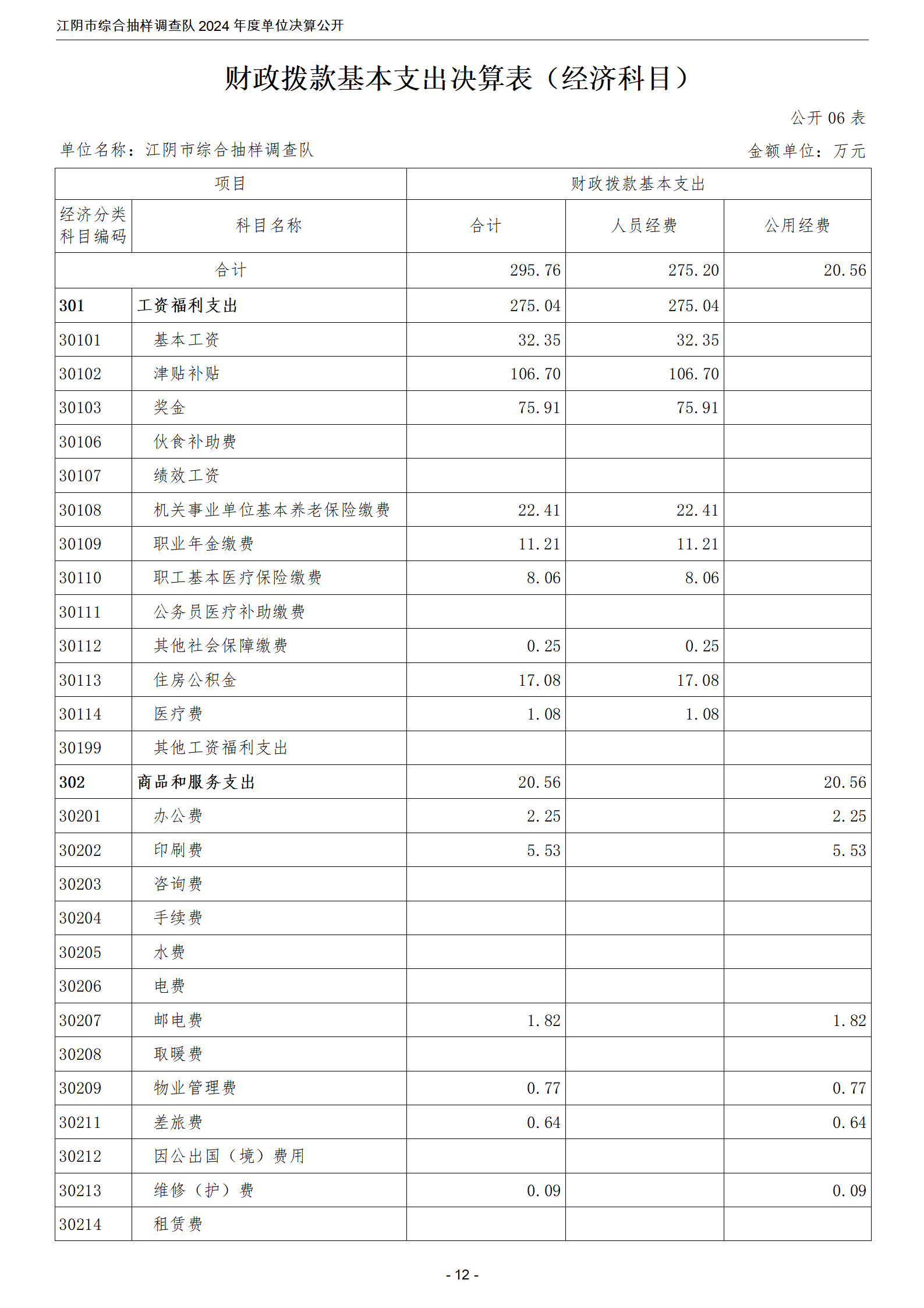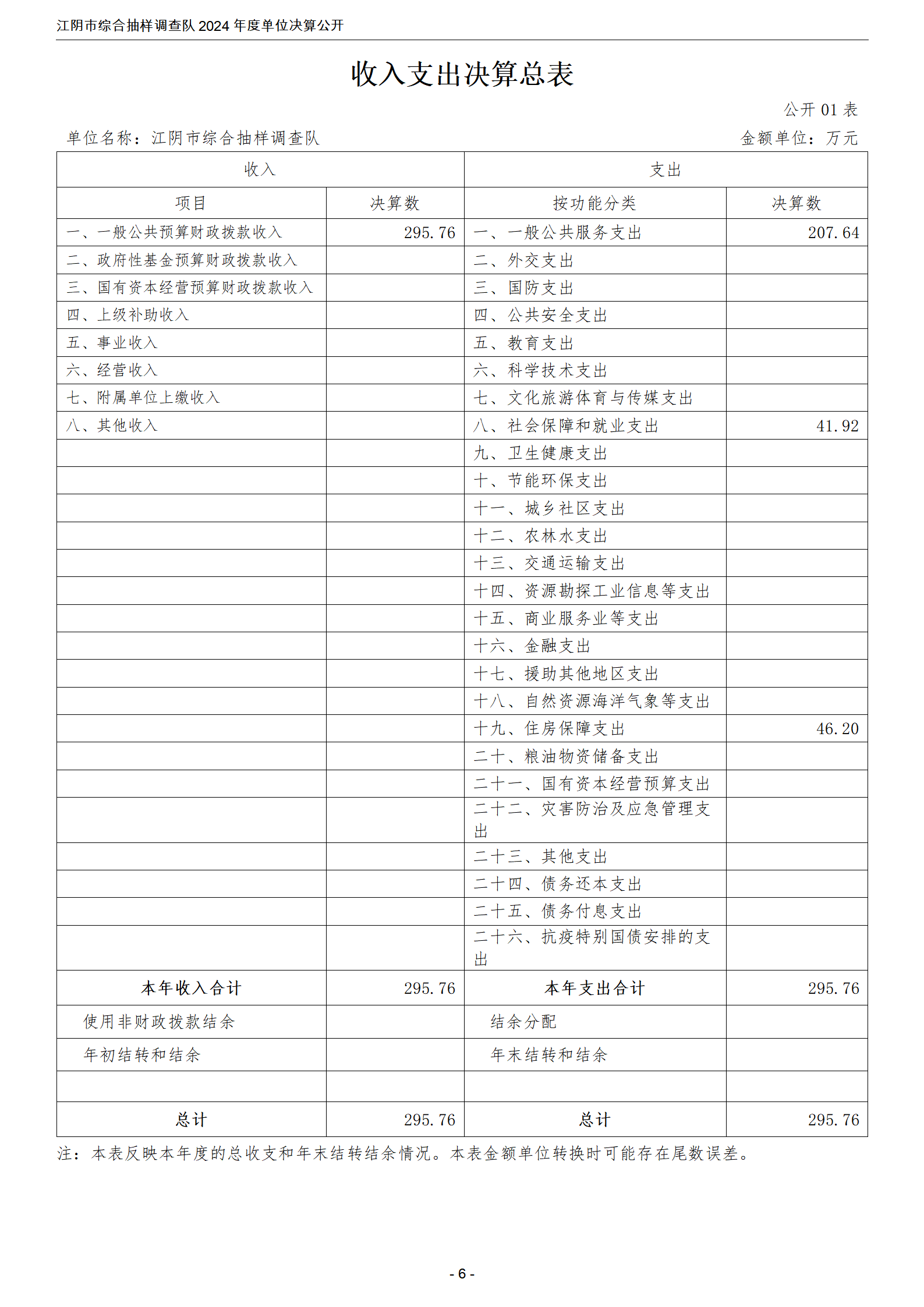 江陰市綜合抽樣調(diào)查隊(duì)2024年度單位決算公開(kāi)