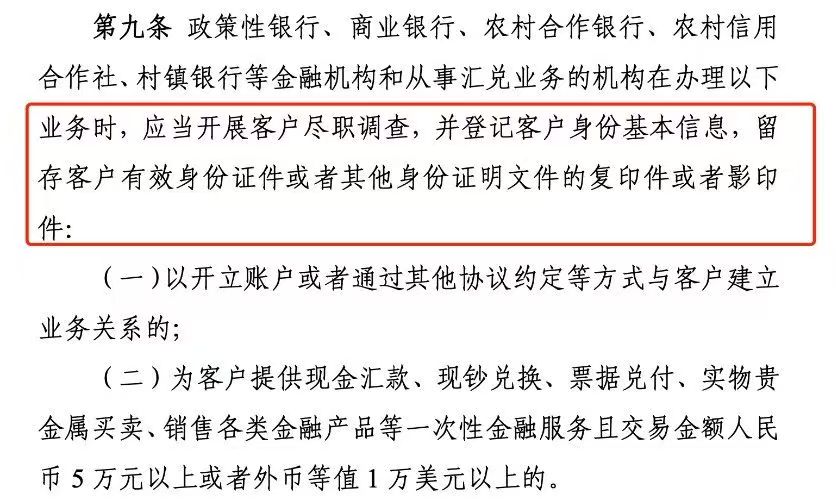 此外,在為客戶提供現(xiàn)金匯款、實物貴金屬買賣等一次性交易金額業(yè)務超過5萬元的,金融機構(gòu)仍需開展盡職調(diào)查,并登記客戶身份基本信息,留存客戶有效身份證件或者其他身份證明文件的復印件或者影印件。