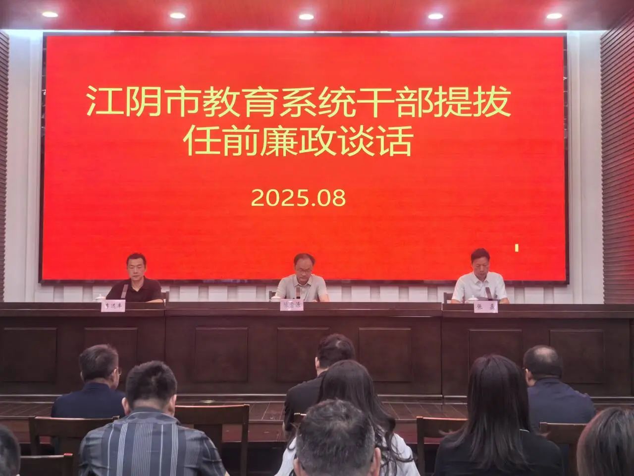 8月14日上午,市委教育工委召開(kāi)江陰市教育系統(tǒng)干部提拔任前廉政談話會(huì)議。市委教育工委書(shū)記、市教育局黨委書(shū)記陳雪源,市紀(jì)委監(jiān)委派駐第三紀(jì)檢監(jiān)察組組長(zhǎng)張磊出席會(huì)議并講話。59名新提拔領(lǐng)導(dǎo)干部參加了集體廉政談話。