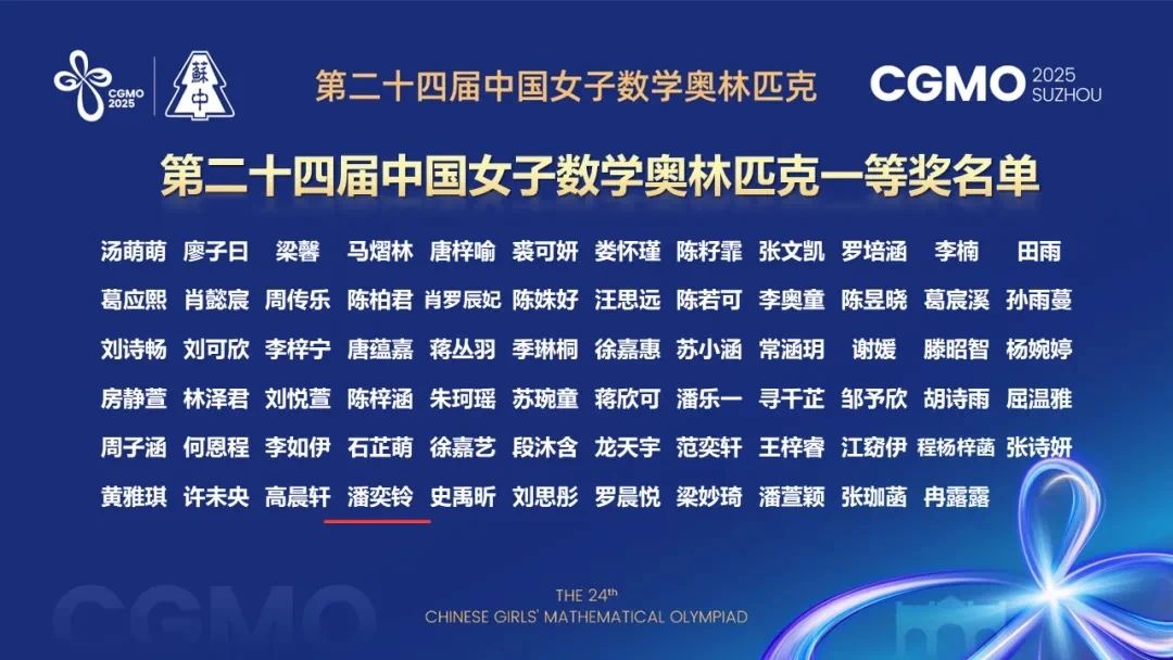 第24屆中國女子數(shù)學(xué)奧林匹克(CGMO)于8月14日圓滿落幕,在這場全國頂尖數(shù)學(xué)盛會上,江蘇省南菁高級中學(xué)潘奕鈴以卓越表現(xiàn),力壓群芳,勇奪金牌!