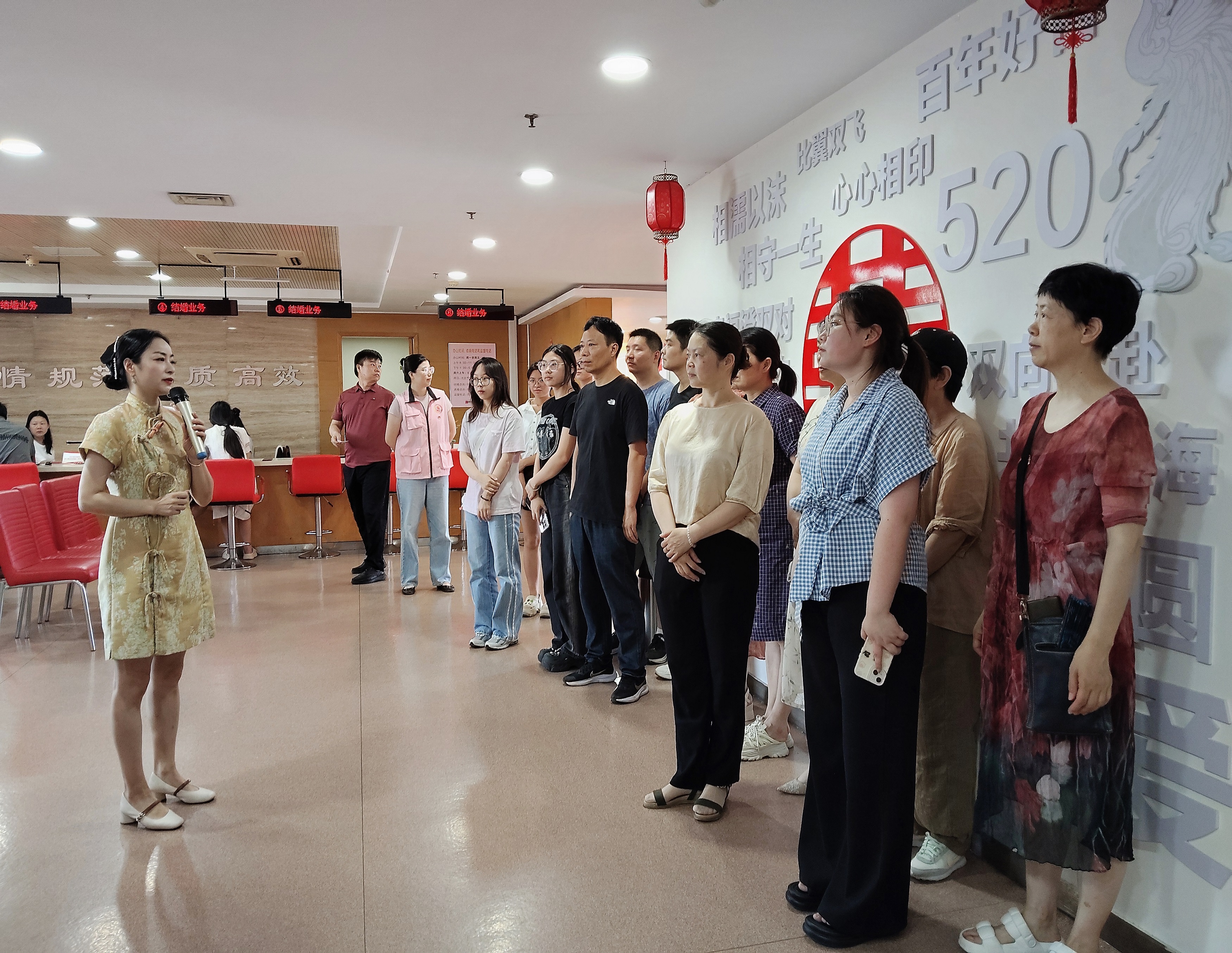 7月1日,城中社區(qū)居民及江陰市職業(yè)技術(shù)學(xué)校的師生代表受邀走進(jìn)江陰市婚姻登記中心,開啟一場甜蜜啟航之旅。中心主任帶領(lǐng)大家參觀了婚姻登記工作場所,了解了業(yè)務(wù)辦理流程、所需材料等便民政策。在“幸福澄雙對”新婚主題樂園,沉浸式體驗(yàn)了江陰特色的新婚輔導(dǎo)服務(wù);在西式合影點(diǎn)和中式兩姓聯(lián)姻墻前,眾人紛紛拍照留戀,了解了“愛的瞬間”拍照打卡服務(wù)的設(shè)計(jì)意義和內(nèi)涵。隨后,大家駐足愛語屏前,通過社工的解讀學(xué)習(xí)“愛的秘訣”,對這種將婚姻家庭經(jīng)營技巧融入互動(dòng)游戲的方式感到新穎和認(rèn)可。