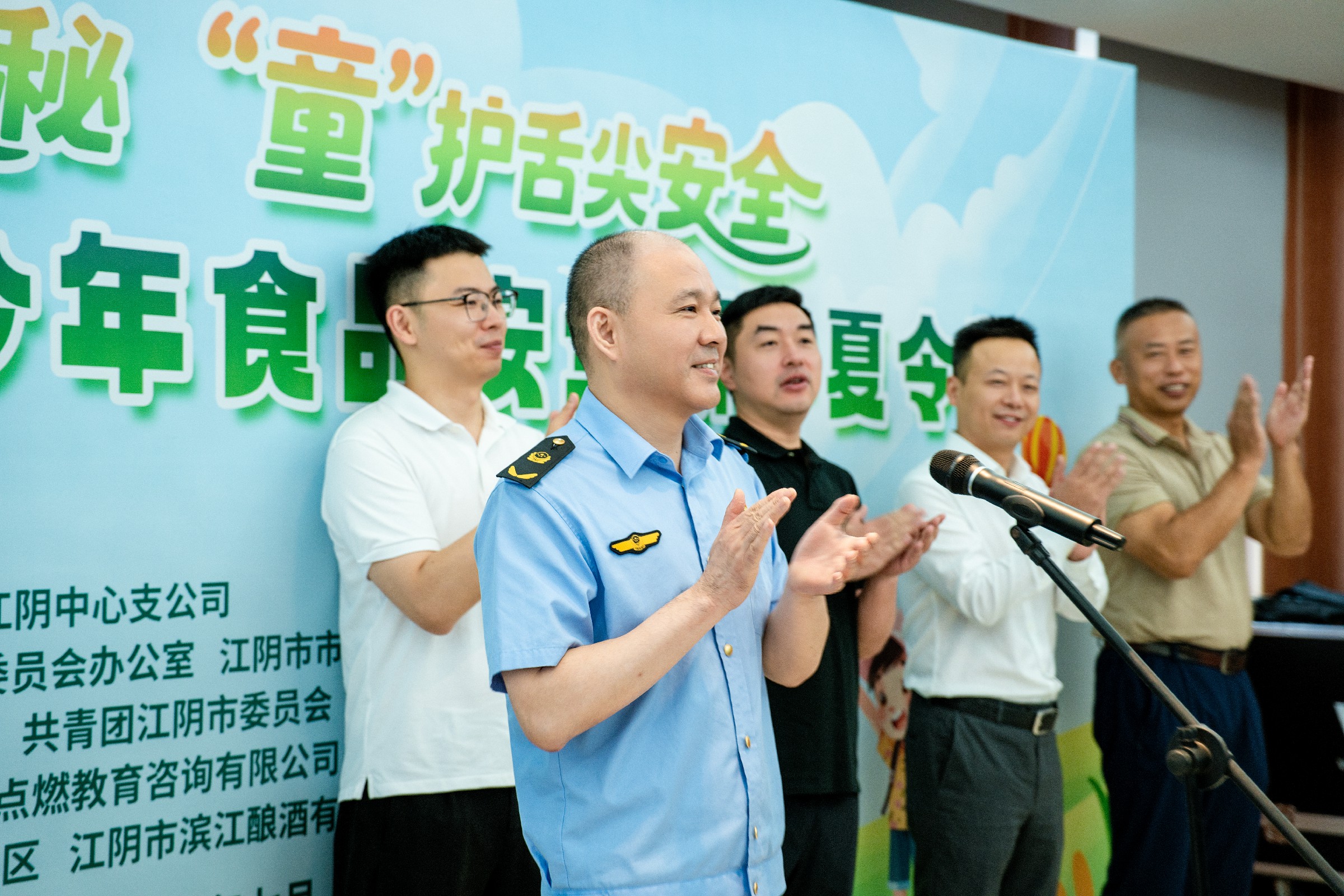 (一)莊嚴(yán)開(kāi)營(yíng),凝聚共識(shí)。開(kāi)營(yíng)儀式于7月31日上午舉行,市市場(chǎng)監(jiān)管局副局長(zhǎng)鄭力強(qiáng)宣布開(kāi)營(yíng),市質(zhì)食藥安辦專職副主任徐慰斌作動(dòng)員講話,平安財(cái)險(xiǎn)江陰支公司總經(jīng)理聶真建致辭,市委社工部、市教育局、市農(nóng)業(yè)農(nóng)村局、團(tuán)市委、市食檢中心出席領(lǐng)導(dǎo)為總隊(duì)長(zhǎng)及7名小組長(zhǎng)進(jìn)行授旗,奠定了活動(dòng)積極向上的主基調(diào)。