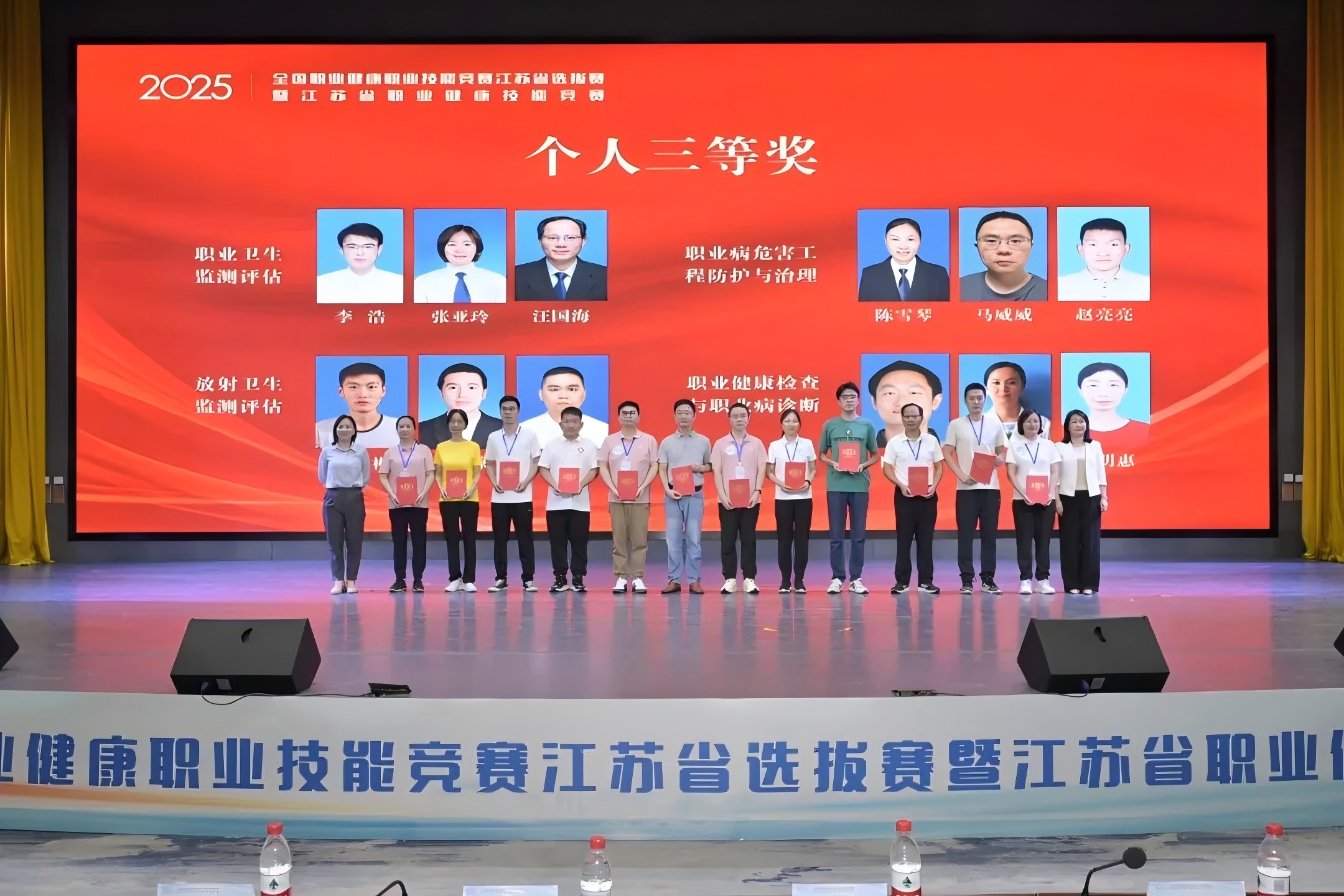 在全國(guó)職業(yè)健康職業(yè)技能競(jìng)賽江蘇省選拔賽暨江蘇省職業(yè)健康技能競(jìng)賽中,市三院職業(yè)衛(wèi)生科科長(zhǎng)錢(qián)一平獲職業(yè)健康檢查和職業(yè)病診斷方向個(gè)人三等獎(jiǎng),她所在的無(wú)錫市代表隊(duì)獲團(tuán)體三等獎(jiǎng)。本次競(jìng)賽設(shè)置職業(yè)衛(wèi)生監(jiān)測(cè)評(píng)估、職業(yè)病危害工程防護(hù)與治理、放射衛(wèi)生監(jiān)測(cè)評(píng)估、職業(yè)健康檢查與職業(yè)病診斷四個(gè)項(xiàng)目。通過(guò)理論考試、現(xiàn)場(chǎng)操作及專(zhuān)業(yè)知識(shí)競(jìng)答,全方位展示了我市職業(yè)健康工作者扎實(shí)的專(zhuān)業(yè)功底和精準(zhǔn)的實(shí)操技能。