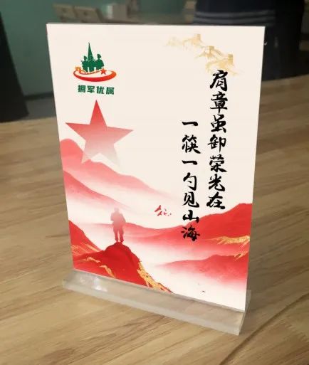 走進(jìn)“擁軍食堂”,除了舒適的就餐環(huán)境,還有觸手可及的雙擁氛圍,餐桌上的擁軍座牌、墻壁上的擁軍圖板,于細(xì)微之處體現(xiàn)對軍人群體的關(guān)愛。