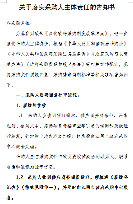 在壓實(shí)采購(gòu)人主體責(zé)任方面,中心依據(jù)相關(guān)法規(guī),制定了《關(guān)于落實(shí)采購(gòu)人主體責(zé)任的告知書(shū)》,明確采購(gòu)人與代理機(jī)構(gòu)的權(quán)責(zé)劃分。該文件要求采購(gòu)人深度參與需求編制、評(píng)審和質(zhì)疑處理等關(guān)鍵環(huán)節(jié),并作為質(zhì)疑處理的第一責(zé)任人,直接負(fù)責(zé)對(duì)因項(xiàng)目需求、資格條件、評(píng)審規(guī)則等引起的詢(xún)問(wèn)和質(zhì)疑,進(jìn)行規(guī)范、高效地答復(fù)與修正。此舉顯著增強(qiáng)了采購(gòu)主體的責(zé)任意識(shí)和履職能力,為政府采購(gòu)活動(dòng)的規(guī)范有序開(kāi)展奠定了堅(jiān)實(shí)基礎(chǔ)。
