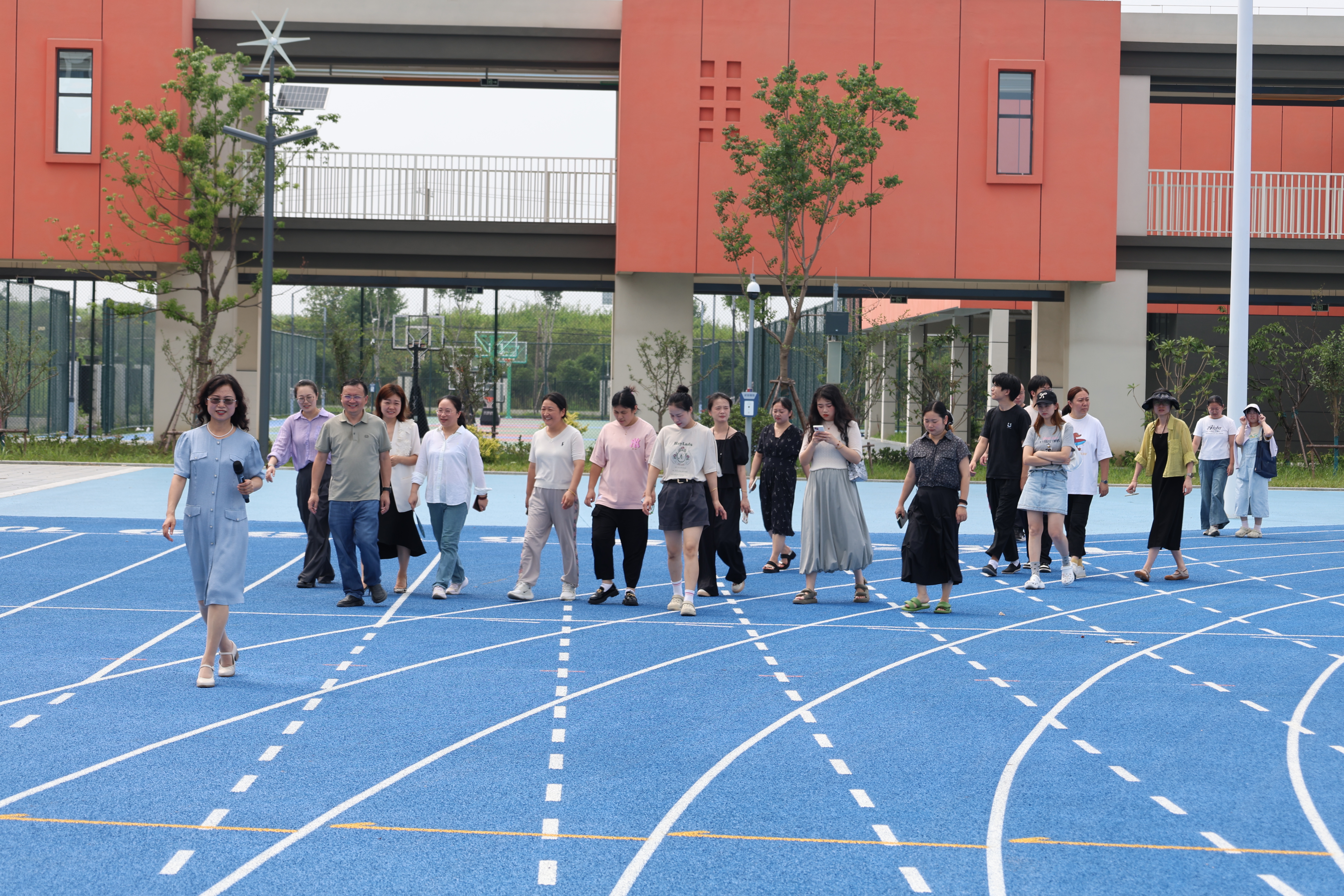 活動分三個階段:第一階段,陸彩萍校長系統(tǒng)闡釋辦學特色與理念,陶芳副校長詳細解讀“五育融合”特色育人體系;第二階段,校領(lǐng)導帶領(lǐng)代表們實地參觀學校科藝中心、智能化教室、綠色食堂及操場等設(shè)施;第三階段,學校領(lǐng)導班子與代表們親切交流。