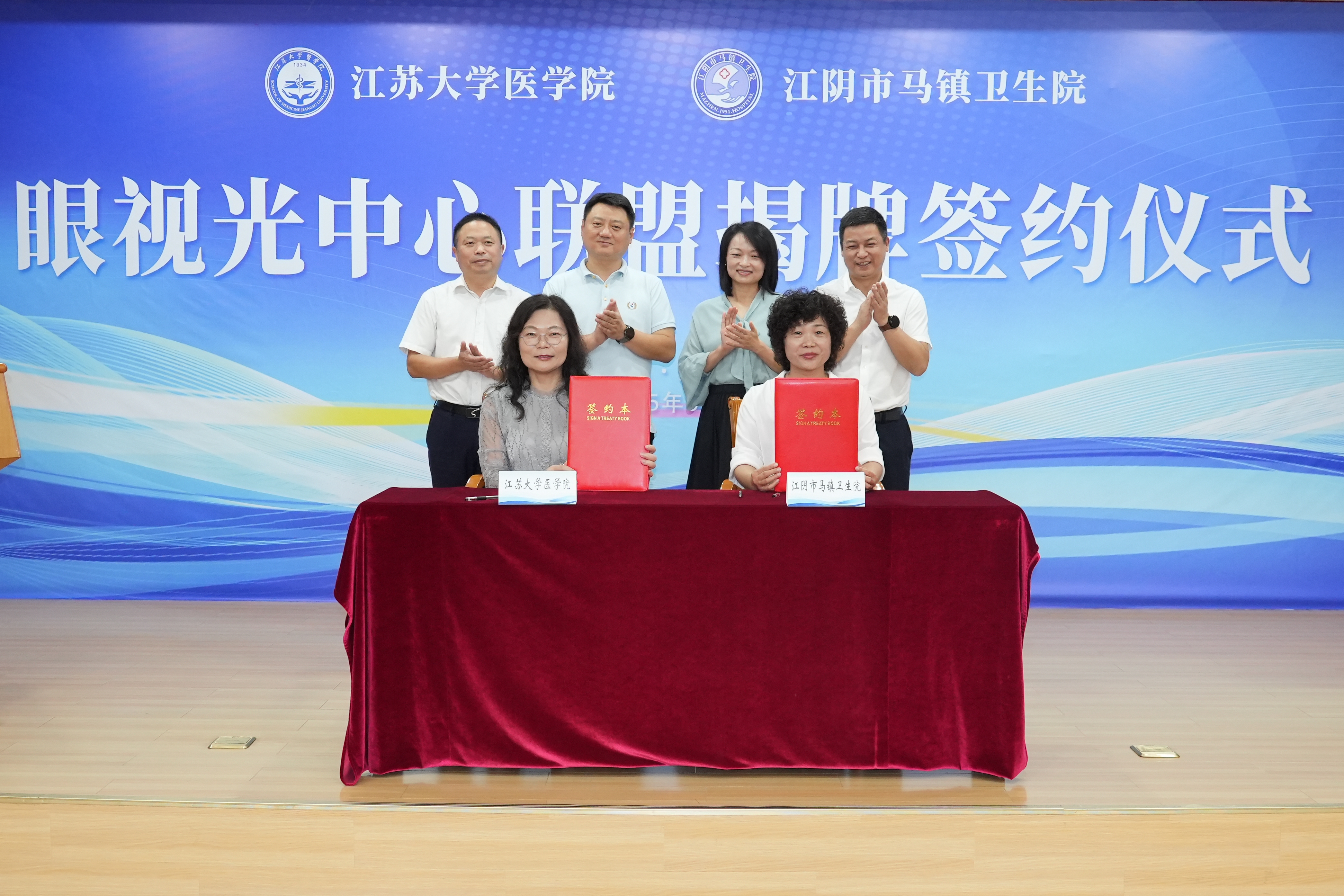 ▲江蘇大學(xué)醫(yī)學(xué)院黨委副書(shū)記、副院長(zhǎng)莊蕾與江陰市馬鎮(zhèn)衛(wèi)生院黨支部書(shū)記、院長(zhǎng)閆慧敏共同簽署眼視光中心聯(lián)盟合作協(xié)議。