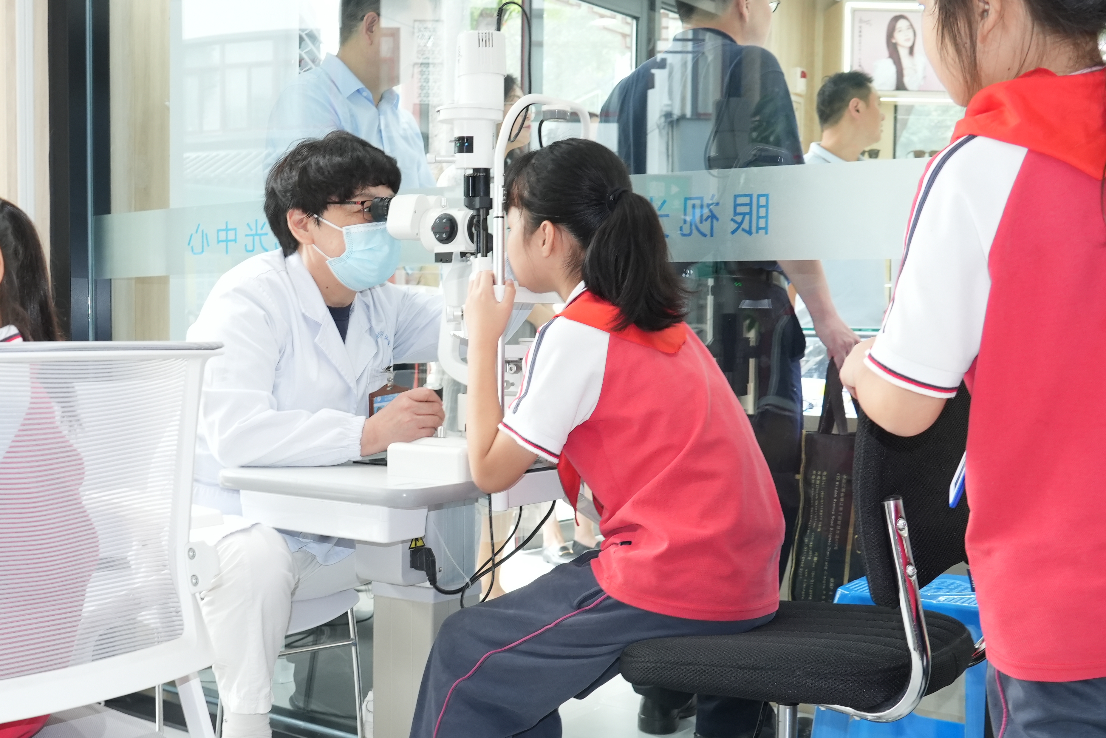 儀式結(jié)束后,眼視光中心為徐霞客實(shí)驗(yàn)小學(xué)學(xué)生提供視力檢測(cè)、屈光篩查、眼底檢查等服務(wù),并針對(duì)近視預(yù)防、日常用眼習(xí)慣等問(wèn)題提供詳細(xì)解答。