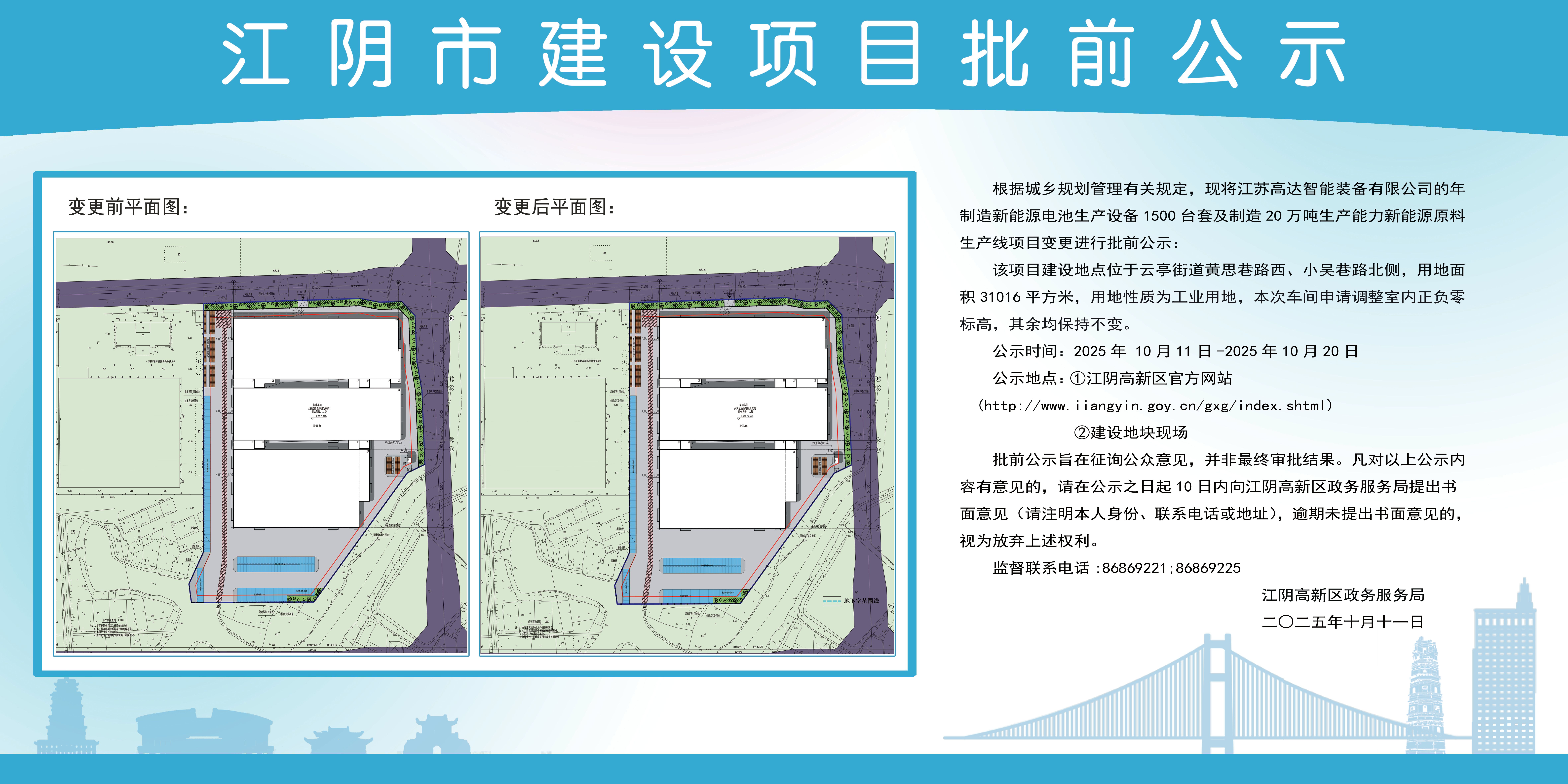 江蘇高達(dá)智能裝備有限公司新能源原料生產(chǎn)線項目變更批前公示