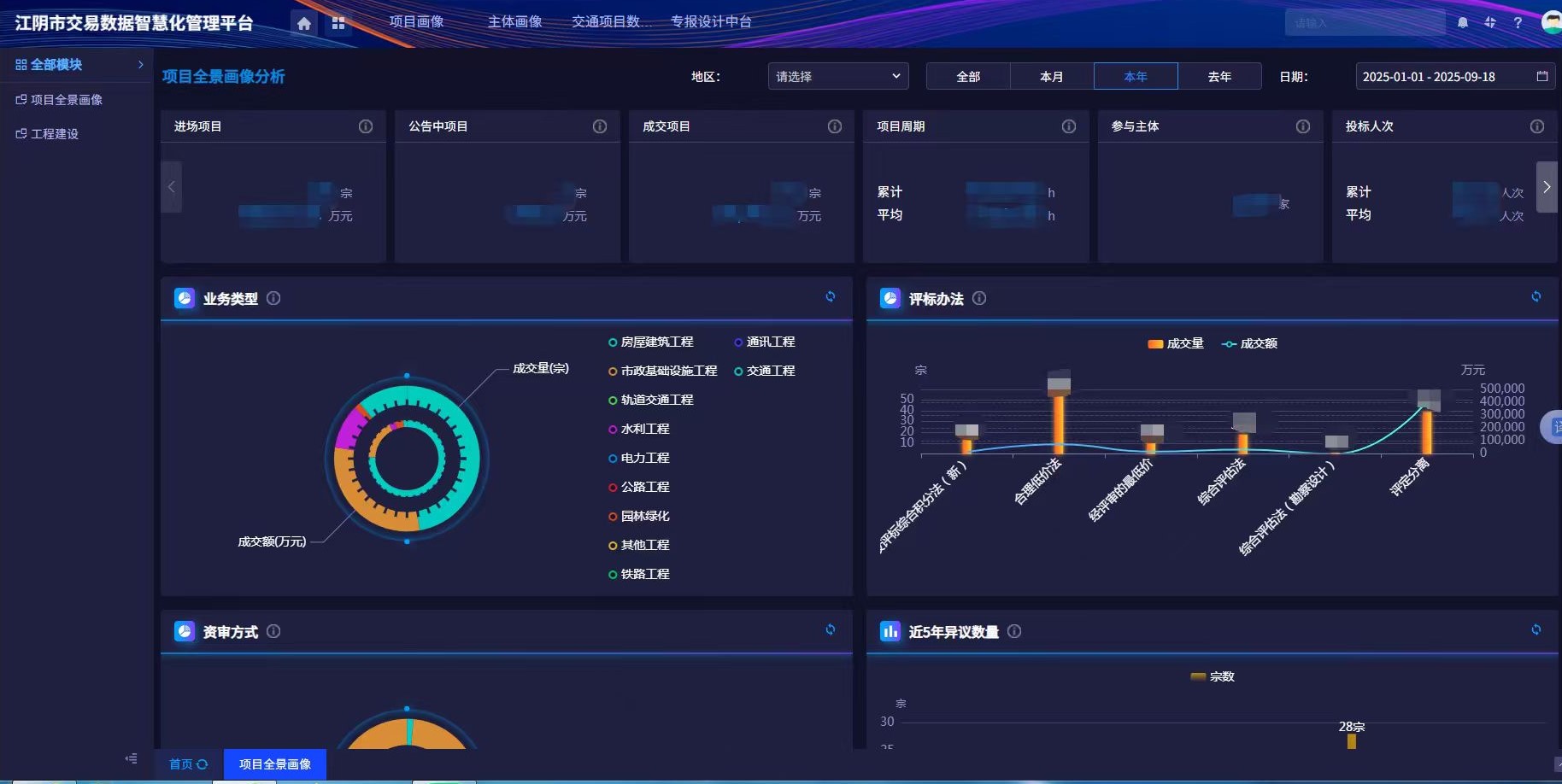 在技術(shù)落地層面,中心重點(diǎn)突破核心數(shù)據(jù)模型設(shè)計(jì)、可視化展示框架搭建及基礎(chǔ)功能模塊開發(fā)三大關(guān)鍵環(huán)節(jié),目前平臺建設(shè)已取得階段性成果。其中,全景畫像功能已正式建成,可整合全市工程建設(shè)領(lǐng)域交易數(shù)據(jù),通過動(dòng)態(tài)圖表、趨勢曲線等可視化形式,直觀呈現(xiàn)交易市場運(yùn)行態(tài)勢、行業(yè)分布特征及不同時(shí)間維度的項(xiàng)目交易差異,讓“數(shù)據(jù)”變“視圖”,實(shí)現(xiàn)交易情況“一屏盡覽”;自動(dòng)生成分析報(bào)告功能同步上線,可根據(jù)預(yù)設(shè)維度或自定義需求,自動(dòng)抓取數(shù)據(jù)、分析規(guī)律、生成報(bào)告,大幅縮短數(shù)據(jù)匯總分析周期,為監(jiān)管部門制定政策、市場主體研判趨勢提供高效數(shù)據(jù)支持,有效解決傳統(tǒng)人工分析耗時(shí)久、效率低、精準(zhǔn)度不足等問題。