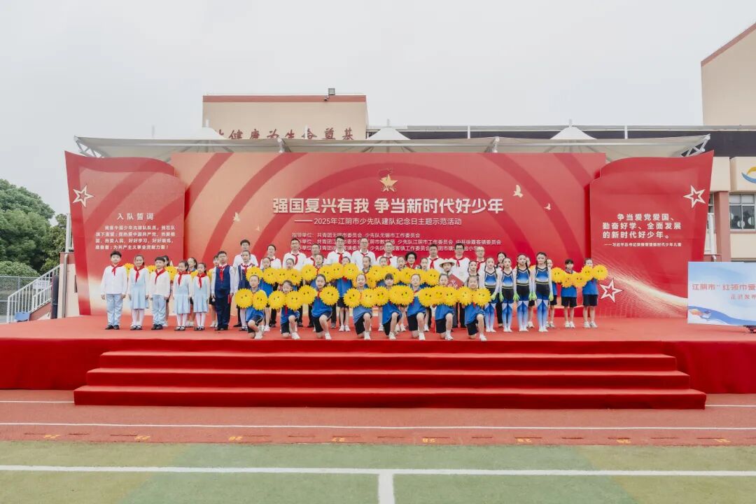 10月13日,“強國復(fù)興有我 爭當(dāng)新時代好少年”——2025年江陰市少先隊建隊紀(jì)念日主題活動在江陰市璜塘實驗小學(xué)舉行?;顒酉蛉w少先隊員致以節(jié)日的問候,希望隊員們傳承紅色基因,將“強國復(fù)興有我”的誓言化作行動,為家鄉(xiāng)爭光、為祖國添彩!在莊嚴(yán)的入隊儀式上,215名新隊員佩戴上鮮艷的紅領(lǐng)巾,在隊旗下莊嚴(yán)宣誓,正式加入中國少年先鋒隊。杰出校友陸生禮深情寄語新隊員熱愛閱讀、熱愛科學(xué)、熱愛祖國。“時刻準(zhǔn)備著!”嘹亮的呼號聲,吹響了隊員們新征程的號角。