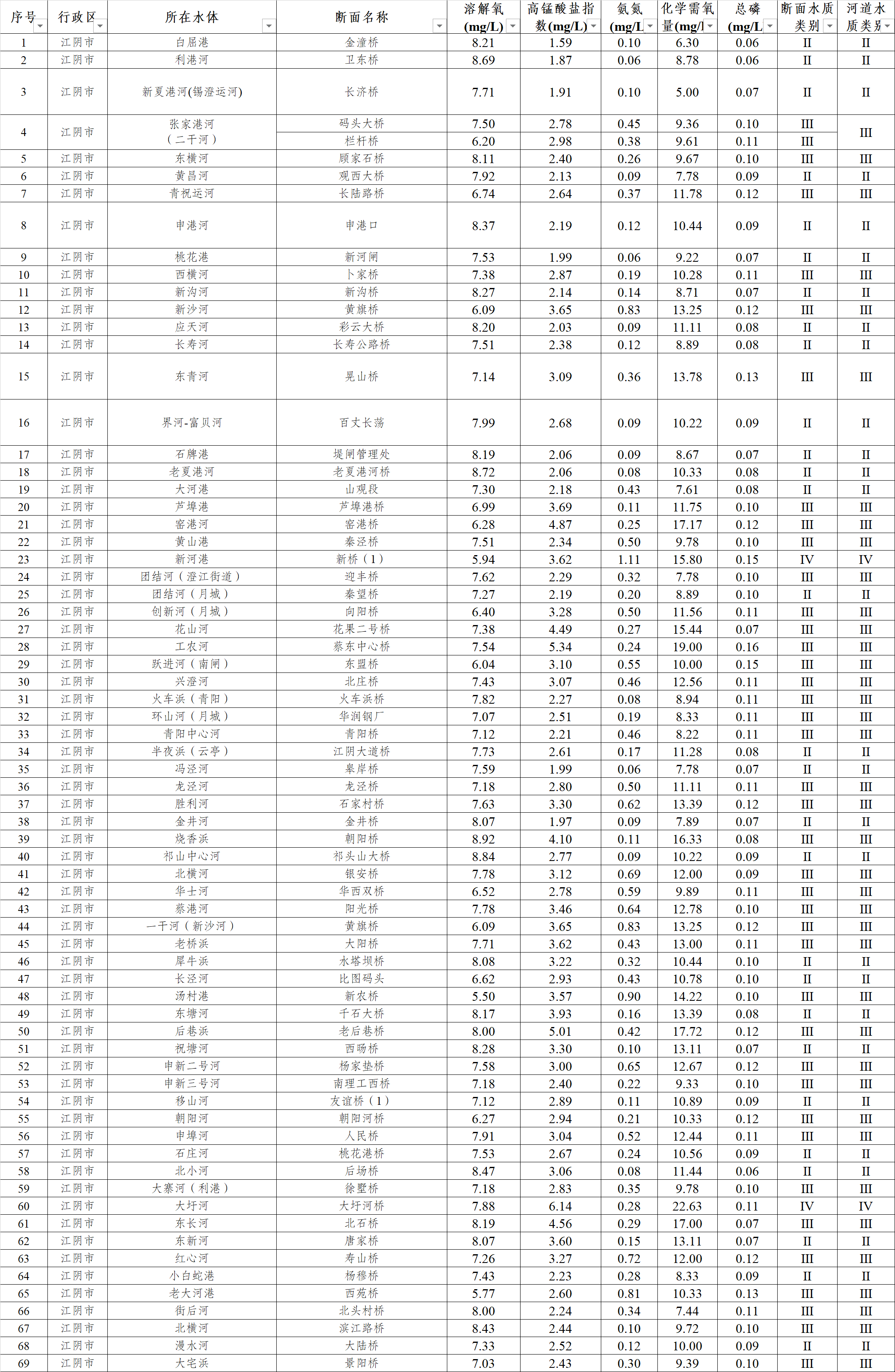 | 內(nèi)容概述 | 2025年全市69條環(huán)境綜合整治河道水質(zhì)情況 | ||||