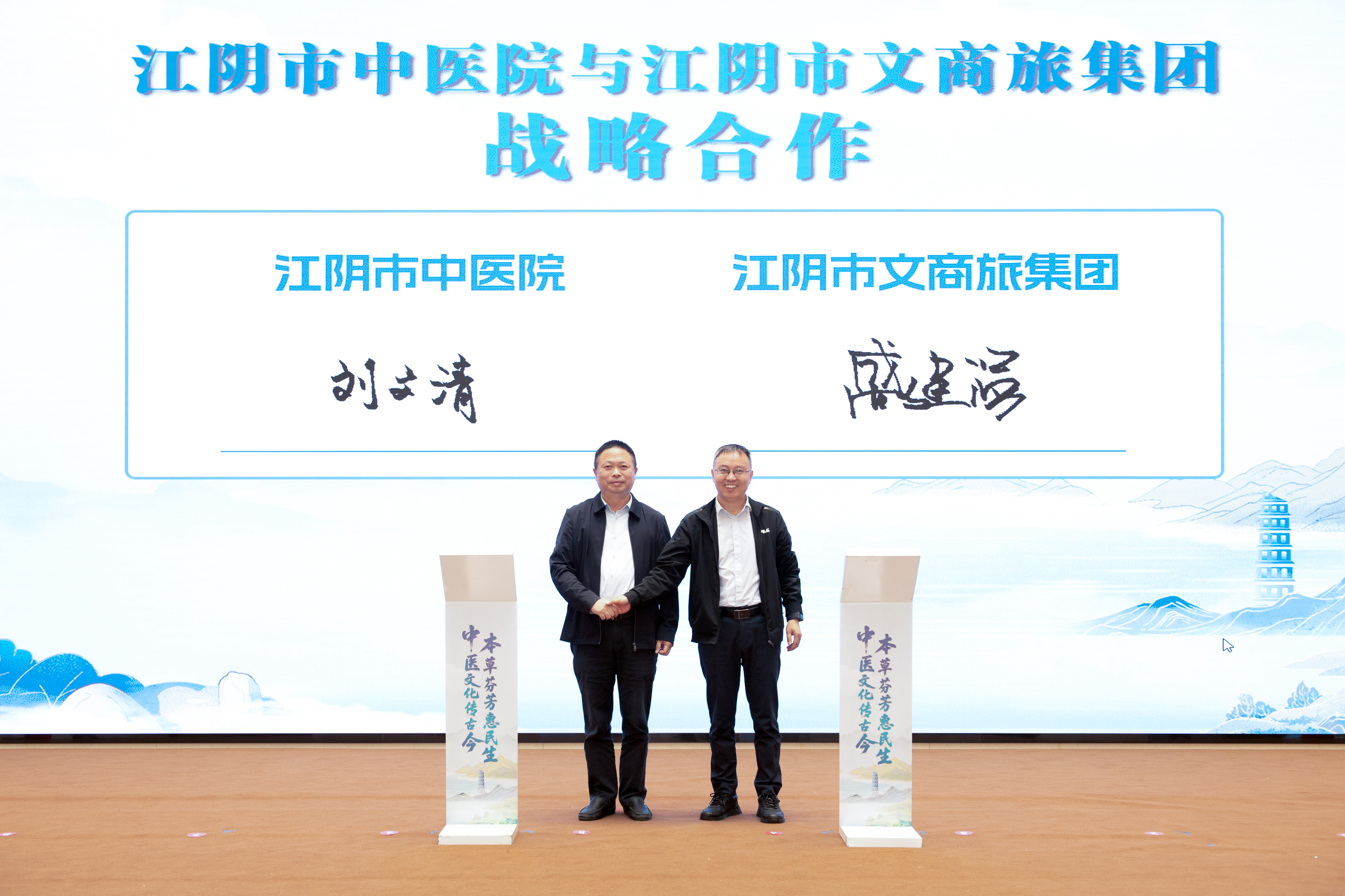 市中醫(yī)院與市文商旅集團簽署戰(zhàn)略合作協(xié)議,雙方將整合資源,探索“大健康+文化+原創(chuàng)IP”發(fā)展新模式,打造具有辨識度的江陰中醫(yī)藥文化產(chǎn)品,讓中醫(yī)藥以更鮮活的方式走進百姓生活。